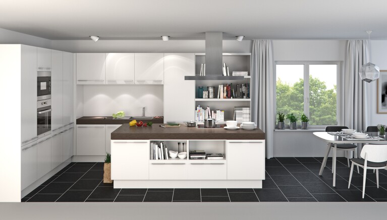 Zur kreativen Küchenplanung gehören aber auch die berühmten kleinen Details. Denn oft sind es die vermeintlich unwichtigen Kleinigkeiten, die in den individuellen Lebensumständen am Ende doch sehr wichtig sind. Das reicht vom einzuplanenden Hunde-Fressplatz über ergonomische Faktoren bei unterschiedlich großen Familienmitgliedern bis hin zur gewünschten Blickrichtung aus dem Fenster beim Kochen. Diese Liebe zum Detail zeigt sich bei kreativen Küchenplanern auch im Einbezug des Küchenumfeldes. Und hier sind die Möglichkeiten nahezu unerschöpflich – denn von der indirekt beleuchteten Sockelleiste über den raffiniert integrierten Klapptisch bis zum Bogenelement in Trockenbauweise ist alles möglich.